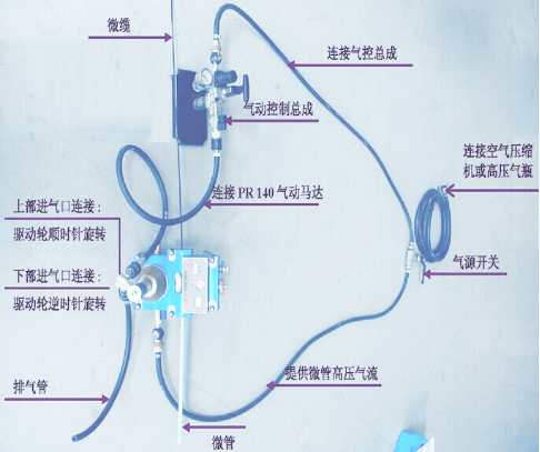 氣送微纜的原理是先將高壓氣體吹入管道中,再利用管道的入口處的動力源把微纜推入管道中,高速流動的氣體使微纜在管道中呈懸浮狀態。高速氣流與光纜表面產生摩擦,對光纜產生了一股托拽力,在氣流托拽力和外部設備推力的共同作用下使光纜在管道中高速前進 。