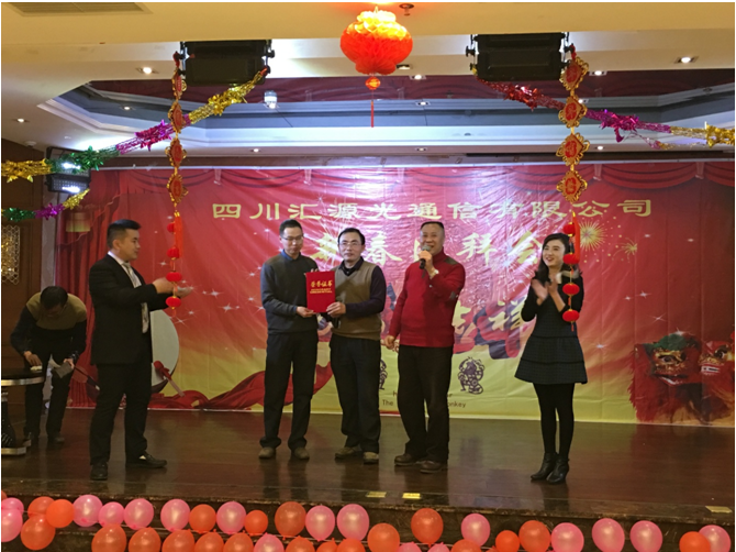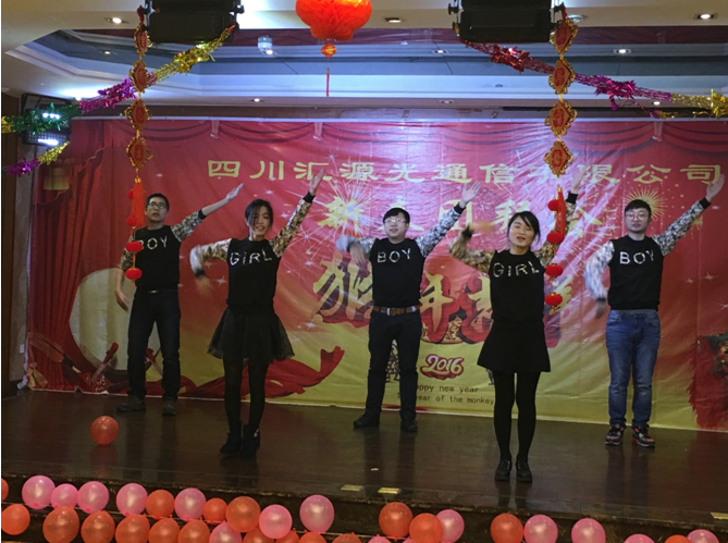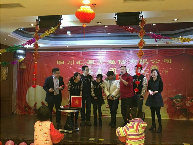 金猴不凡賀新春!猴爺送福送吉祥! 2016年2月5日晚6時,匯源光通信有限公司領導及全體員工歡聚一堂,舉辦了一場充滿歡樂與青春活力的新春團拜晚會。