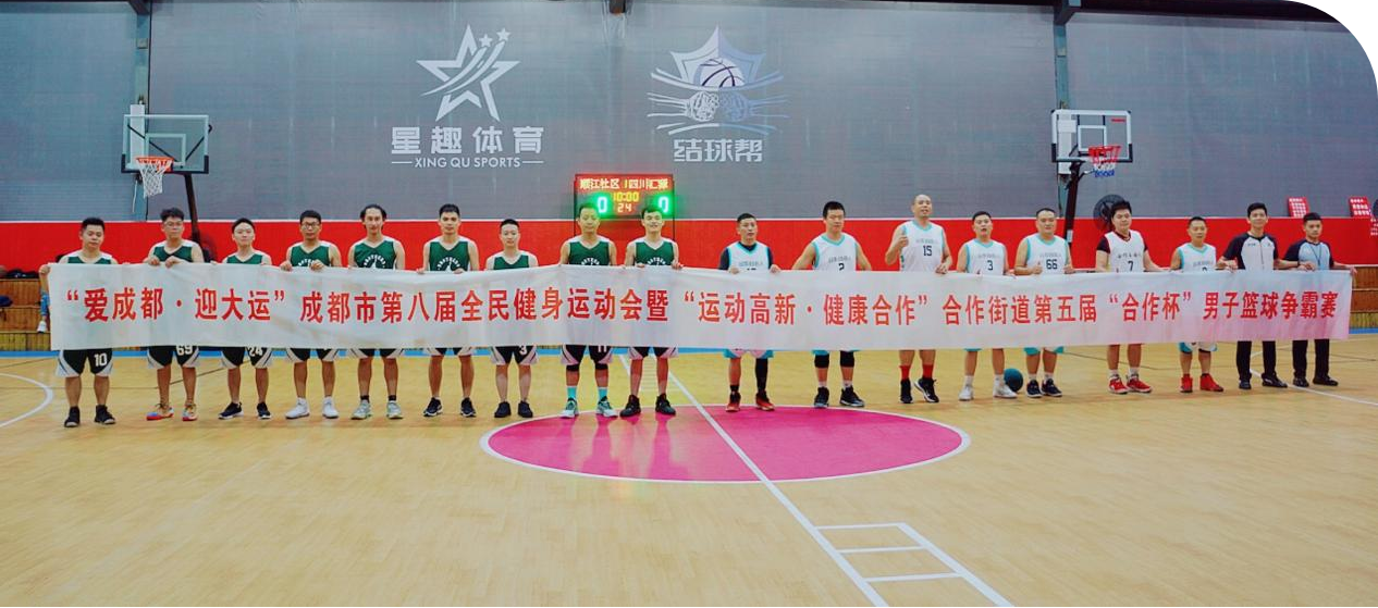 2021年9月25日,愛成都·迎大運”成都市第八屆全民健身運動會暨“運動高新·健康合作”合作街道第五屆“合作杯”男子籃球爭霸賽在電子科技大學附屬中學體育館拉開帷幕。